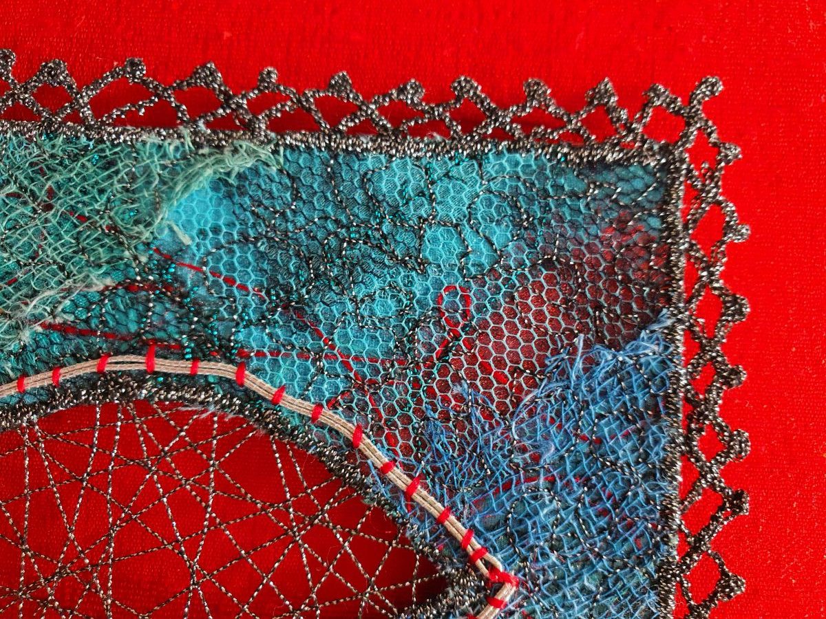 Rita Johnson, Inside the Dance, Embellishment and machine embroidery. I like the sense of movement in this, and the colours.